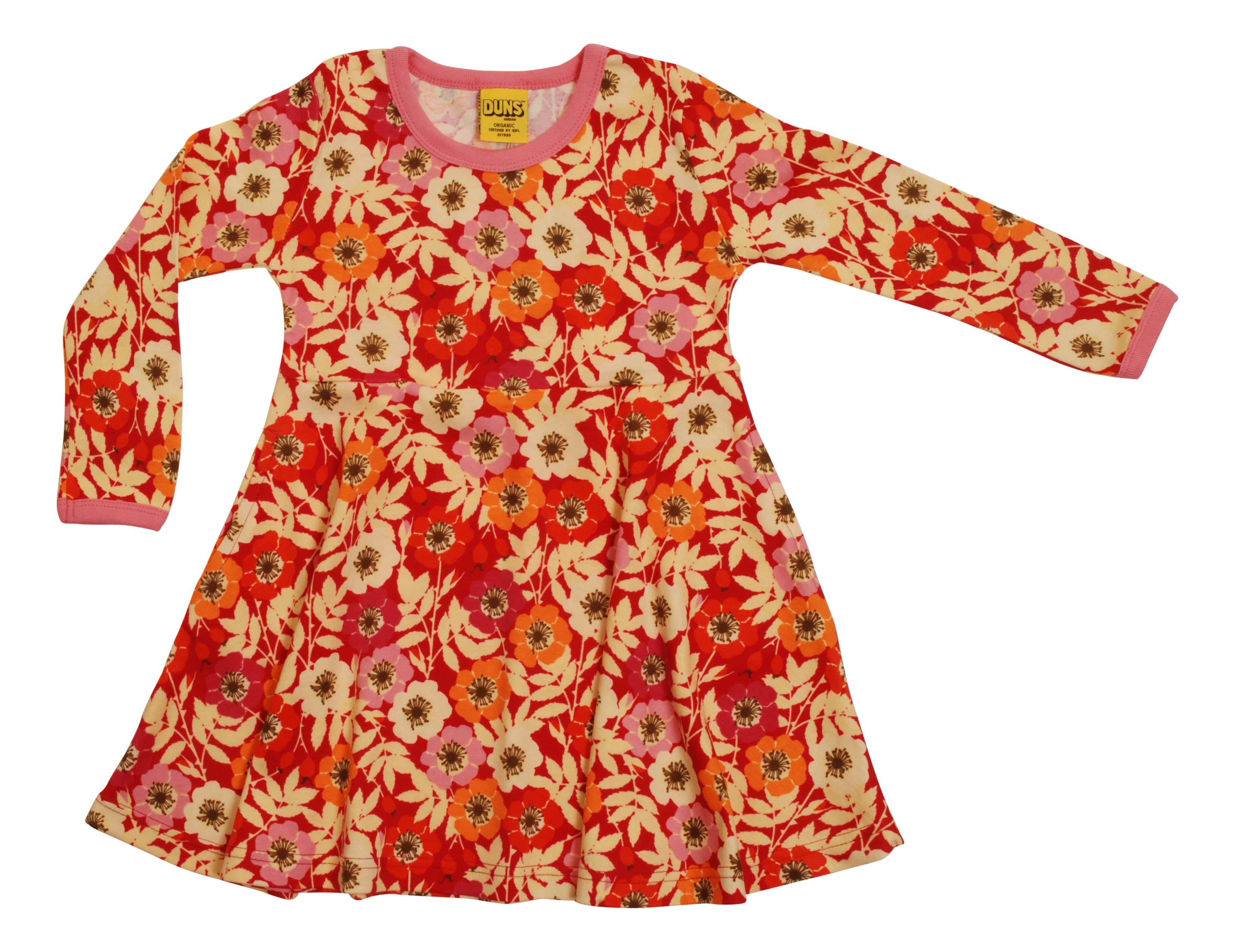 This is a long sleeved skater dress, in the striking Rosehip print. Runs slightly generous and has handy pockets too :)