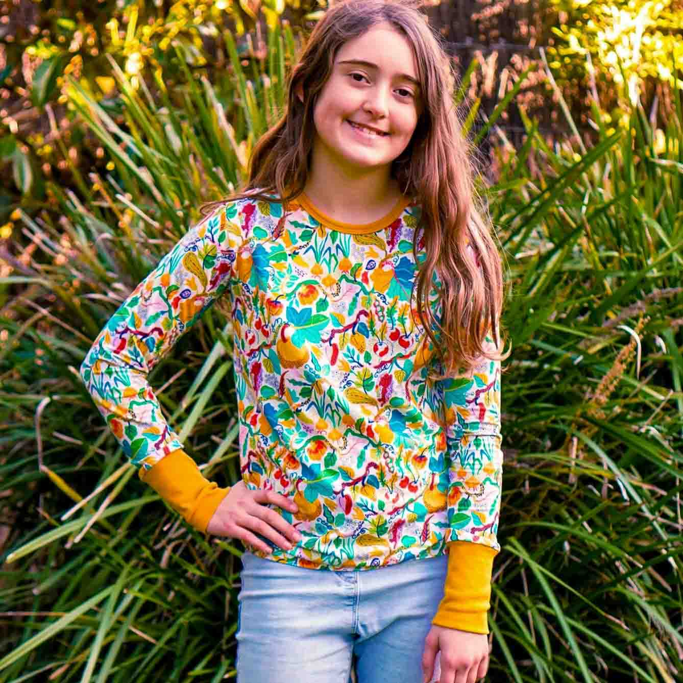This is a fabulous long sleeved tee in the Garden Harvest print in a mix of beautiful colours.