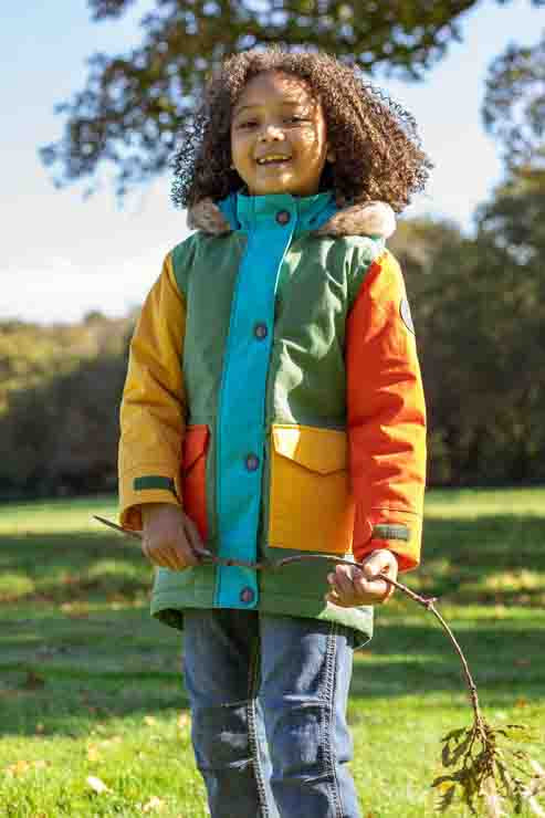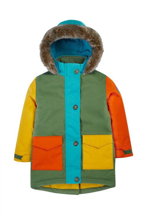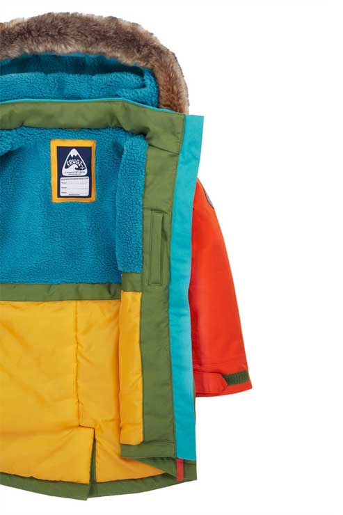It has 3000HH waterproof rating with taped seams. Body, sleeves and hood are lined with recycled sherpa fleece. Zip opening with button storm placket and zip guard. Internal elastic drawcard waist adjustment, internal chest pocket. Adjustable cuff fastenings, large patch front pockets with concealed snap fastening, Reflective badge detail.