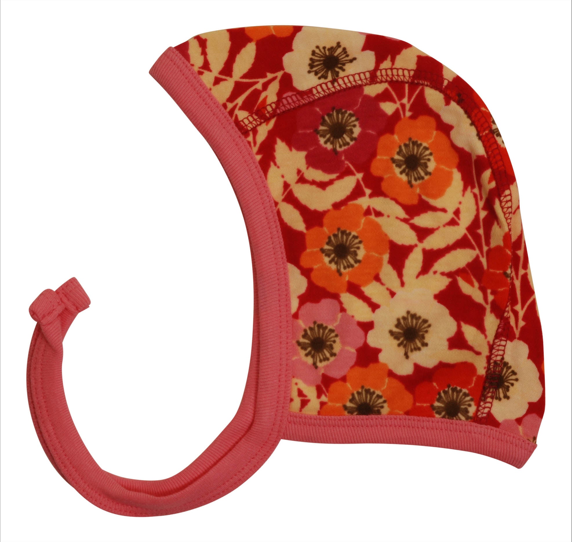 This is an easy to wear baby cap with handy ties, in the Rosehip print. Please note all sizes are approximate and based on actual head circumference in cm.