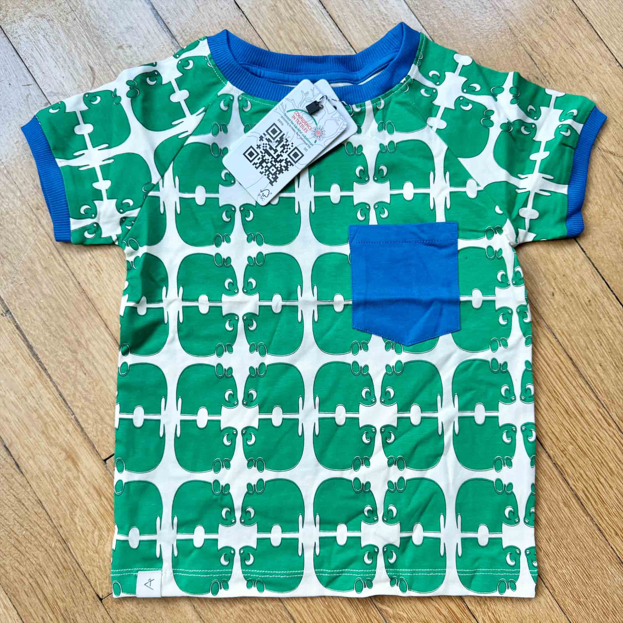 Lovely and soft Bright Gold coloured short sleeved t-shirt with all over print and side pocket to the chest. Exceptional quality and quirky design as you would expect from Danish Designer Alba of Denmark!