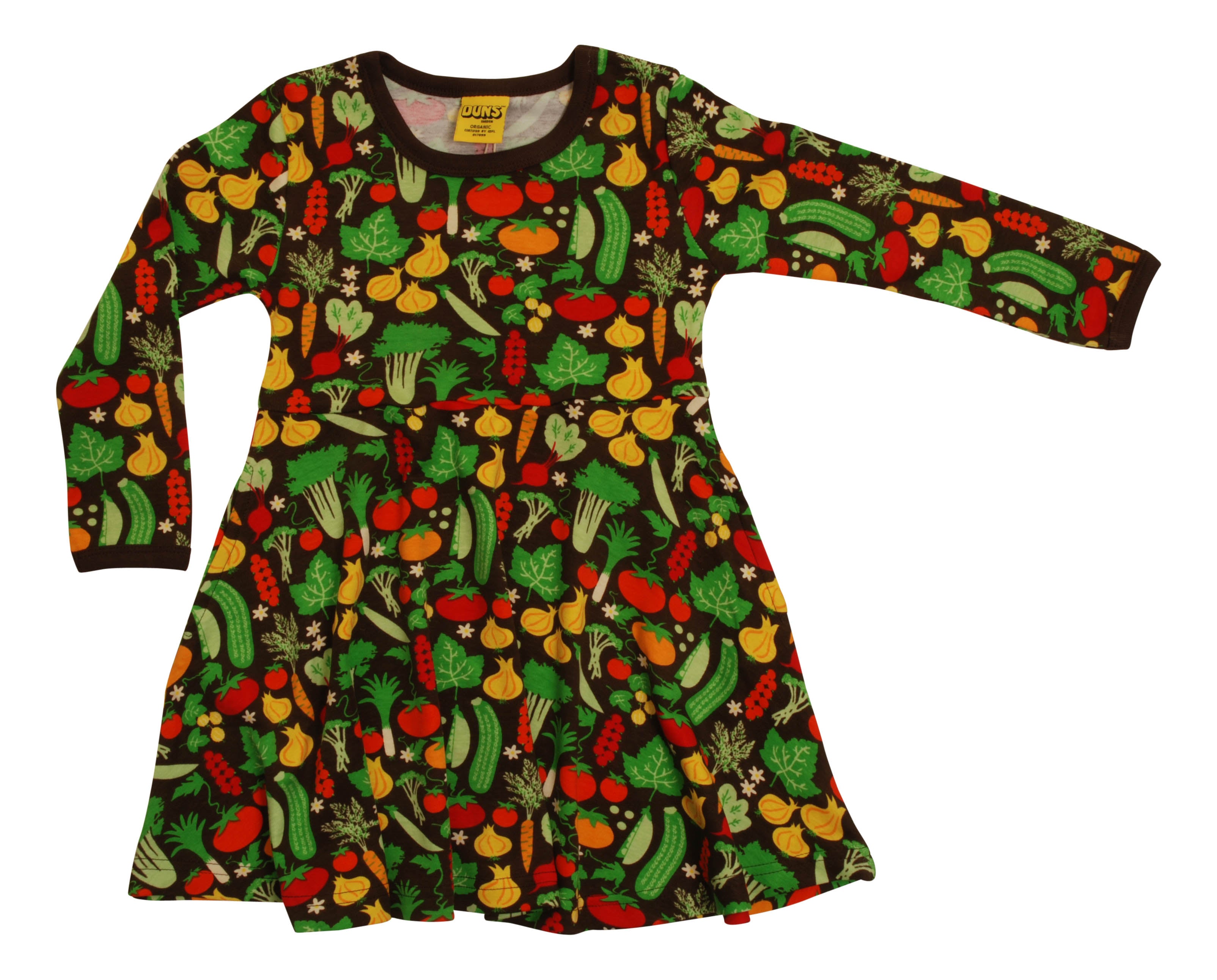 This is a long sleeved skater dress, in the striking Veggies print. Runs slightly generous and has handy pockets too :)