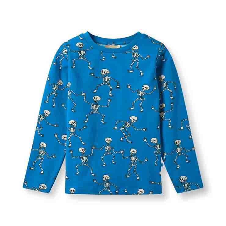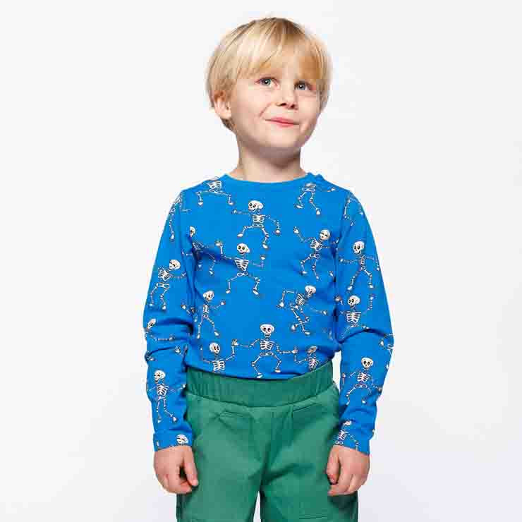 This is a long sleeved t-shirt in the blue colour with plenty of detail. Made of super soft organic cotton and runs TTS.