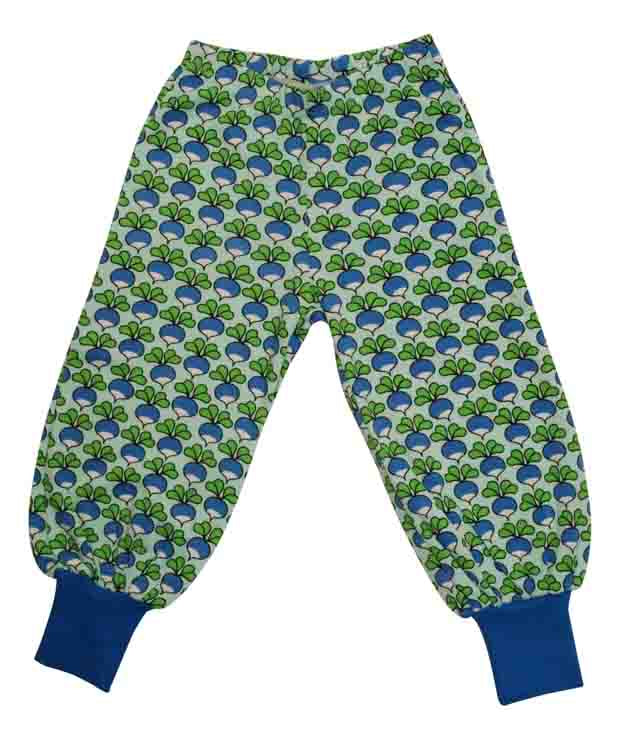 This is an easy to wear pair of baggy pants, with an elasticated waist in the Radish Beach Glass print in blue. Please note : these are slightly generous in size π