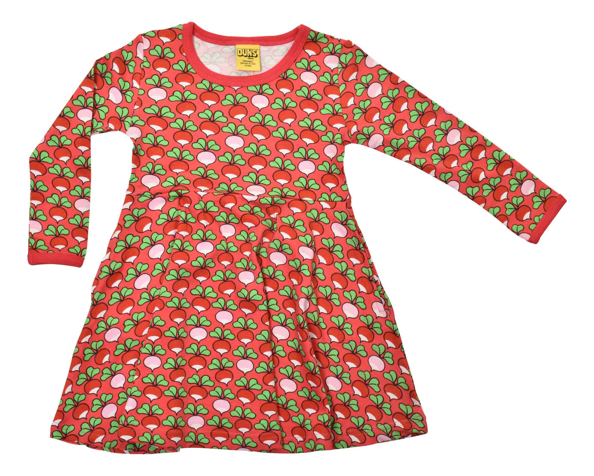 This is a long sleeved skater dress, in the striking Radish print. Runs slightly generous and has handy pockets too :)