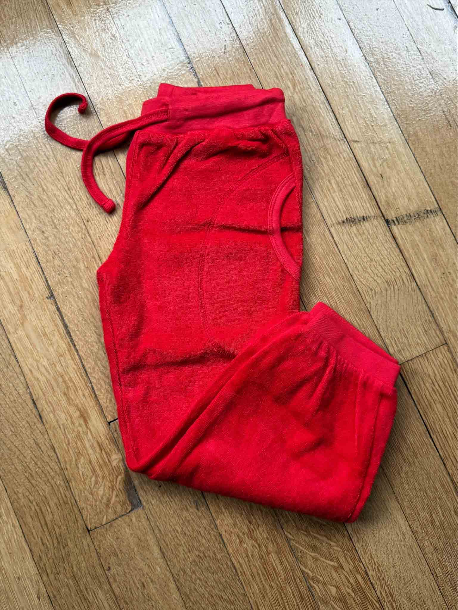 This is an easy to wear pair of terry baggy pants, with an elasticated waist in the Pompeian Red colour palette. Please note : these are slightly generous in size 🙂Â