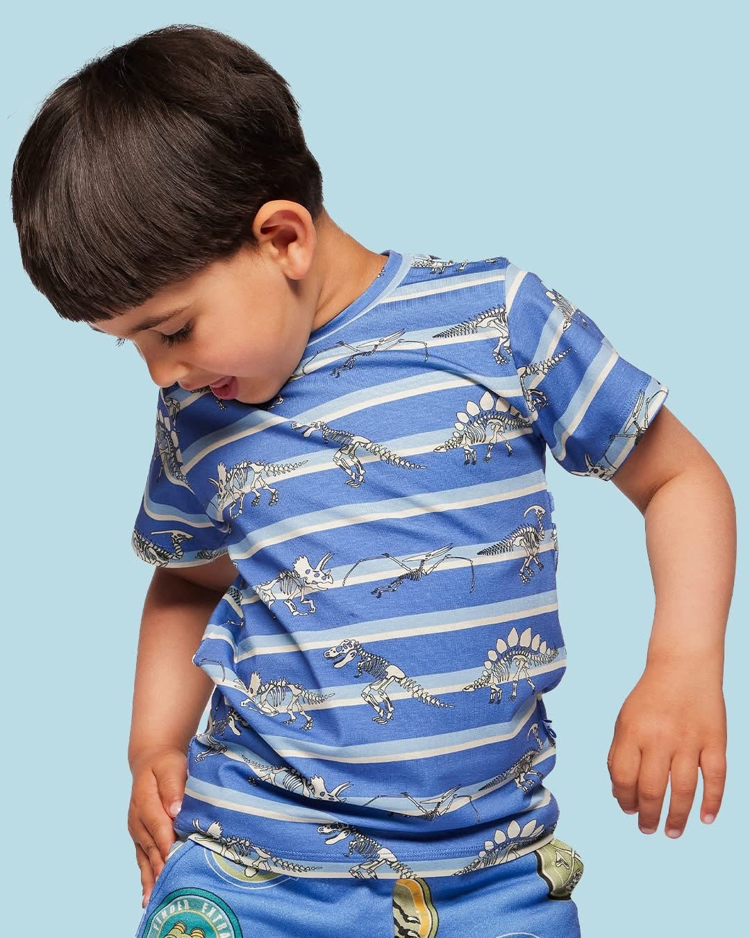 This is a pretty short sleeved t-shirt in a blue colour with plenty of detail. Made of super soft organic cotton and runs TTS.